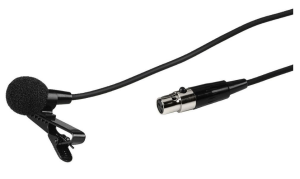 Elektretowy mikrofon krawatowy Miniaturowa wersja Wymagane zasilanie przez adapter EMA-300P (wyposaż. dodatk.) W komplecie 6m kabel połączeniowy oraz klips