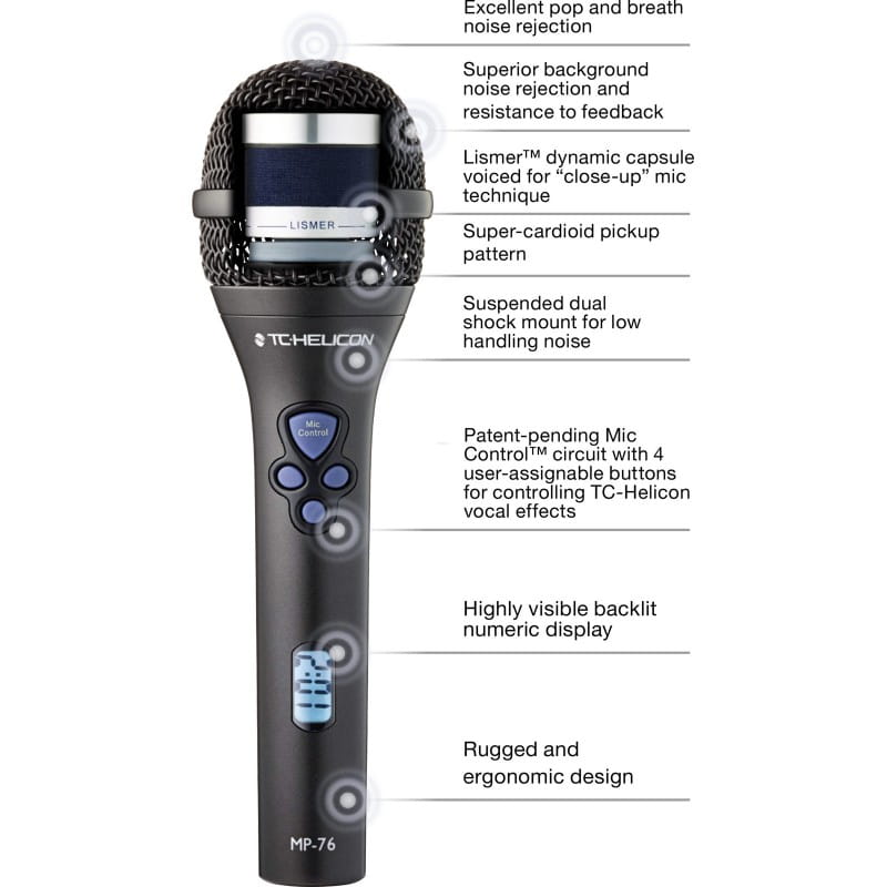 Projektując MP-76 konstruktorzy TC Helicon skupili się także na jego budowie, aby przetrwał trudy każdej trasy koncertowej, w jakiej będzie brał udział. Obudowa została odlana z metalu, zaś sam grill wykonany został z drutu z hartowanej stali i uzupełniony o piankowo-tekstylny pop-filtr. Zastosowanie we wkładce neodymowego magnesu pozwoliło na uzyskanie krystalicznego brzmienia i wysokiego sygnału wyjściowego.