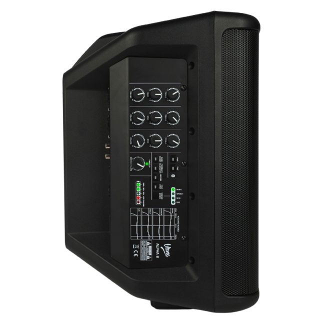 V-TONE ALPHA 8 wyróżnia się również trwałością i estetyką. Obudowa wykonana z PVC i MDF jest odporna na uszkodzenia, a stalowa maskownica chroni głośniki przed zewnętrznymi czynnikami. Kolumna posiada 35-milimetrowe gniazdo umożliwiające montaż na statywie, co ułatwia jej instalację w różnych konfiguracjach. Dodatkowo, ergonomiczny uchwyt transportowy zwiększa wygodę przenoszenia.