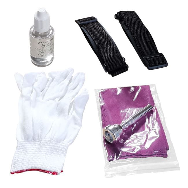 W zestawie: futerał z szelkami, ustnik, rękawiczki, ściereczka, oliwa.