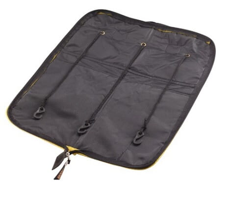 Pokrowiec na pałki perkusyjne, podszyty 5 mm warstwą gąbki, 3 wewnętrzne schowki i 2 zewnętrzne kieszenie.