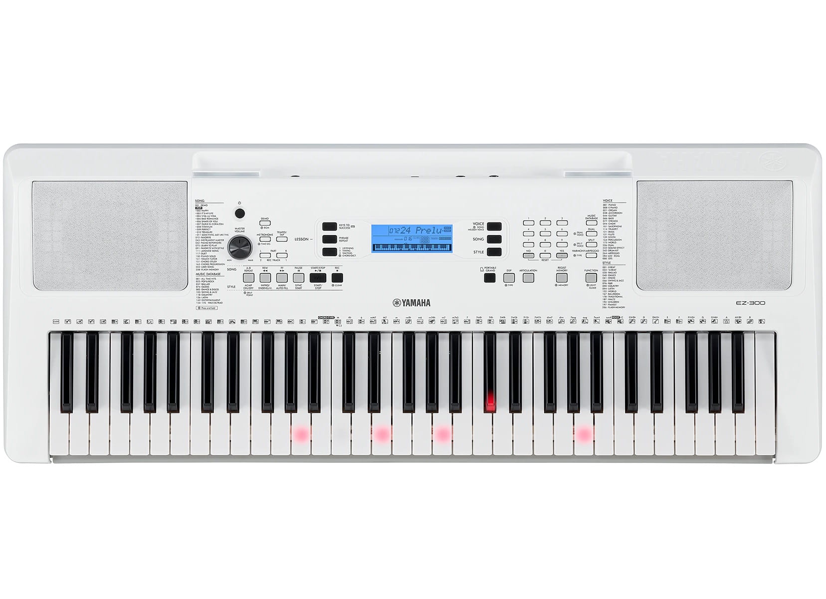 EZ-300 to brat bliźniak modelu PSR-E373 rozbudowany o podświetlaną klawiaturę. 61-klawiszowa klawiatura dynamiczna - specjalnie wyposażona w podświetlane klawisze i zaprojektowana jako podstawowy model przenośnej klawiatury dla początkujących graczy. Stylowy i wszechstronny, pozwala ćwiczyć, grać i występować z różnymi funkcjami lekcji i autentycznymi dźwiękami instrumentów.
