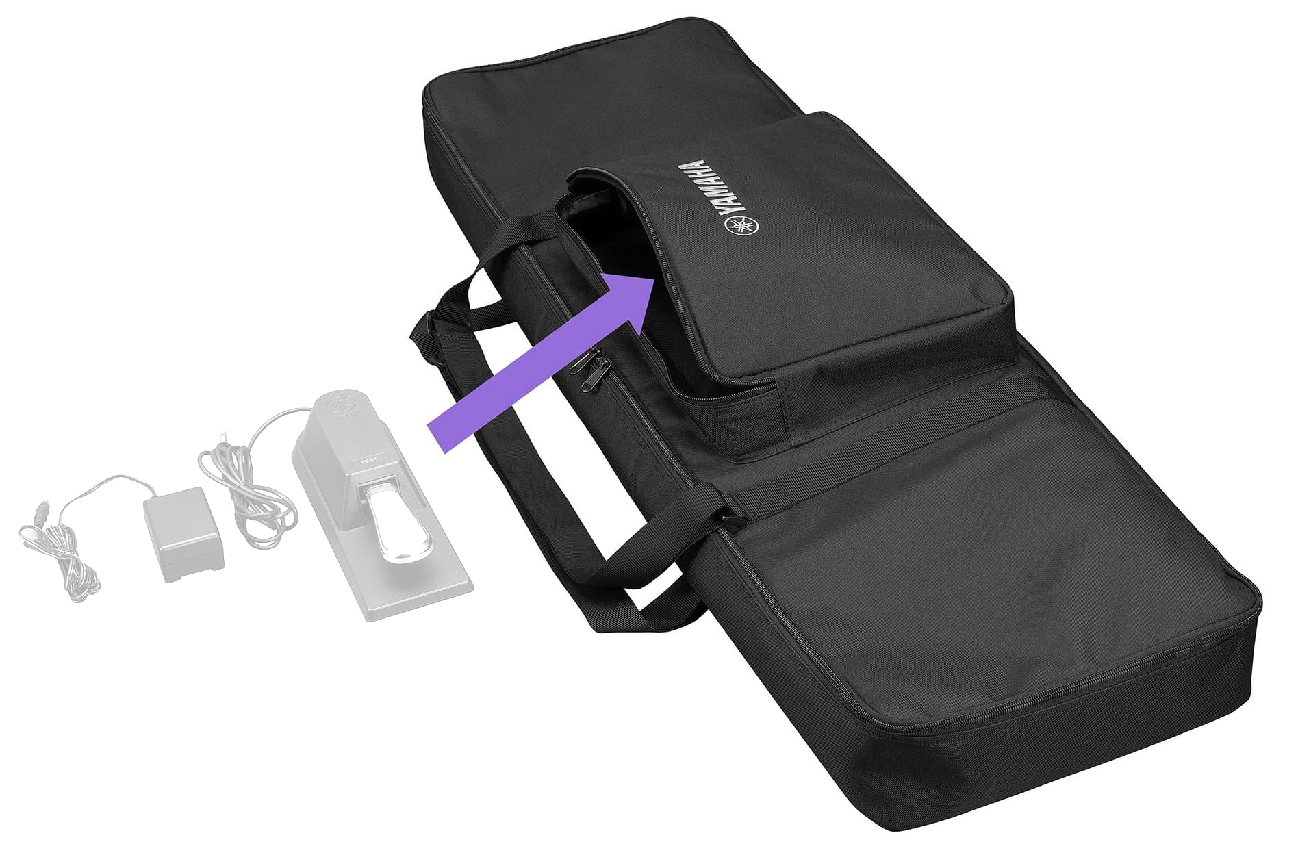 Zewnętrzna kieszeń na zasilacz i pedał sustain;