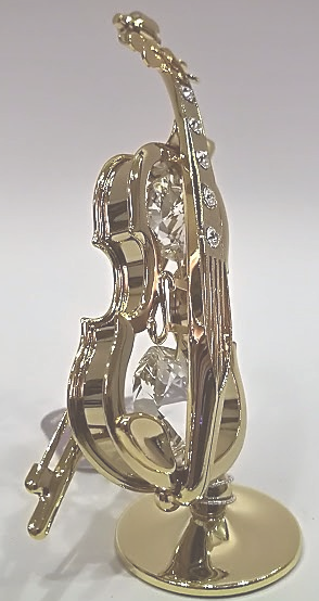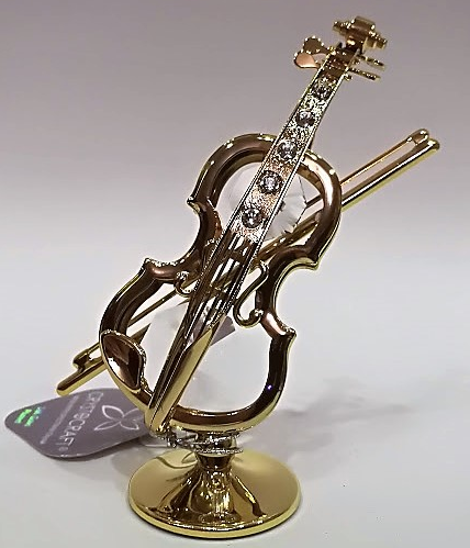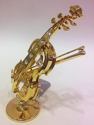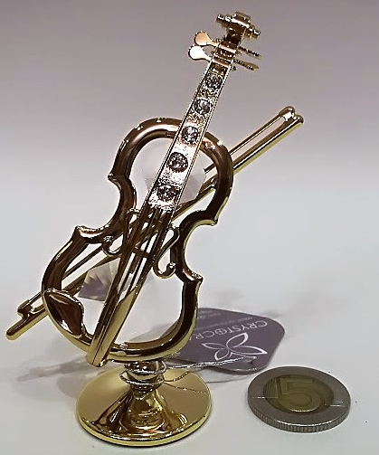 Metalowa platerowana w kolorze złotym (pokryta 24-karatowym złotem) miniatura skrzypiec z kryształami Swarovskiego.