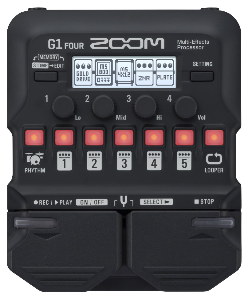 G1 FOUR oferuje 65 wbudowanych efektów 13-amperowe modele do symulacji klasycznych zestawów. Jednocześnie można użyć do 5 efektów połączonych ze sobą w dowolnej kolejności. Looper do nagrywania do 30 sekund / 64 uderzeń dźwięku jakości CD z płynnymi czasami rozpoczęcia i zakończenia. Oprogramowanie Guitar Lab do tworzenia, edycji i zarządzania efektami i łatkami