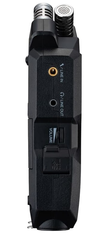 Wyjście liniowe 3,5 mm umożliwia podłączenie słuchawek lub kamery. H4essential posiada również wejście mikrofonowe/liniowe 3,5 mm.