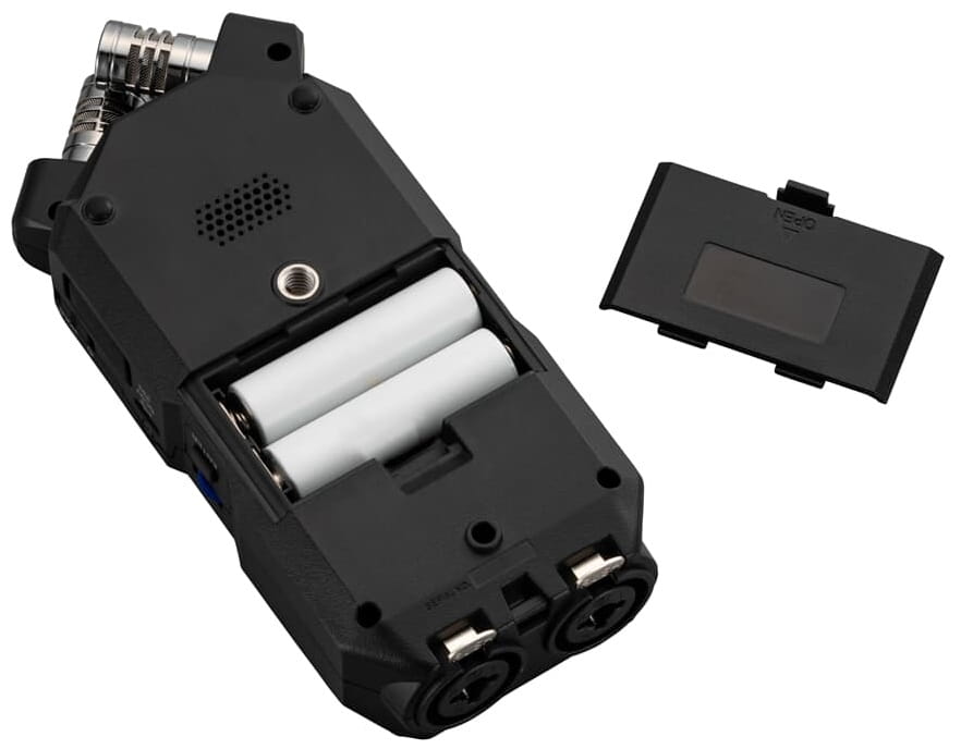 2 wejścia combo XLR/TRS są wyposażone w ultra-czyste przedwzmacniacze Zoom, które obsługują zasilanie phantom i profesjonalne wejście liniowe +4dBu. Wbudowane mikrofony X/Y mogą przechwytywać dźwięk do 130 dB SPL, co odpowiada koncertowi rockowemu.